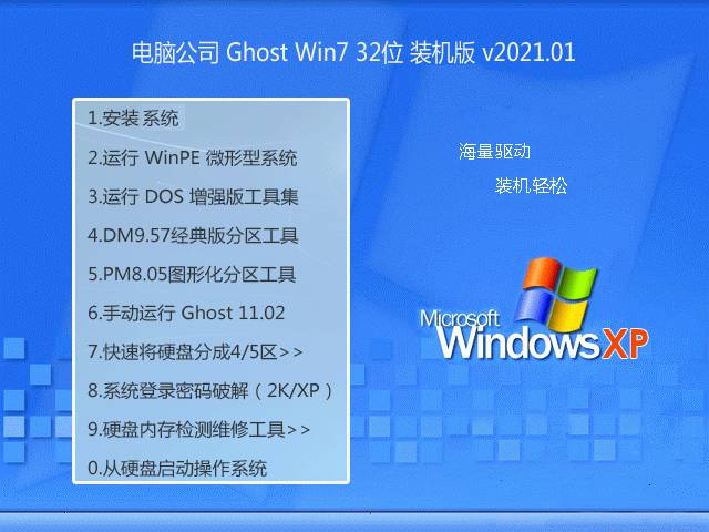 电脑公司Ghost Win7 32位 青年装机版 2021.01在默认安装设置服务的基础上,关闭了少量服务,包括终端服务和红外线设备支持,自动安装 AMD/Intel 双核 CPU 驱动和优化程序,发挥新平台的最大性能,在不影响大多数软件和硬件运行的前提下,已经尽可能关闭非必要服务,显卡启动项和声卡启动项只会在第一次进入桌面时运行,重启电脑自动清除,保留系统常用服务,直接支持局域网共享、无线网络、打印机功能等,在不影响大多数软件和硬件运行的前提下,已经尽可能关闭非必要服务。