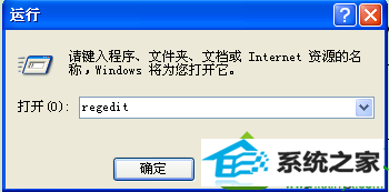 1、点击“开始——运行”选项,在打开的运行窗口中输入“regedit”命令后按“确定”键。