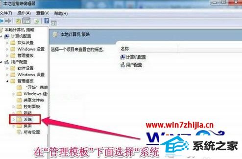 2、弹出“本地组策略编辑器”窗口,在窗口左侧树目录里,找到“用户配置”下的“管理模版”选项,选择此项;