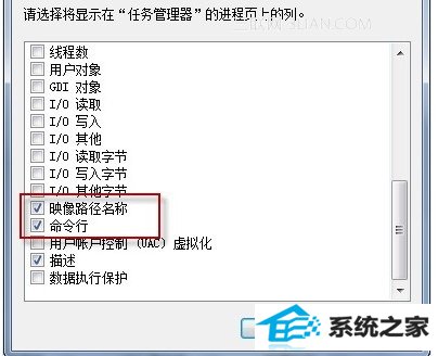 找到里面的“镜像路径名称”以及“命令行”这两项,并勾选它们就可以了。如图: