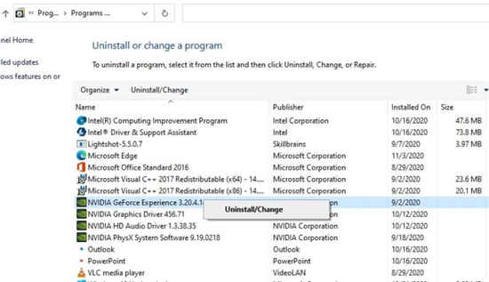 • 在这里卸载与nvidia(你的图形驱动程序)有关的所有内容,然后重新启动系统以保存更改