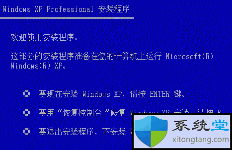 3、在进入win xp安装界面时,如下图所示,按R键,修复win xp。