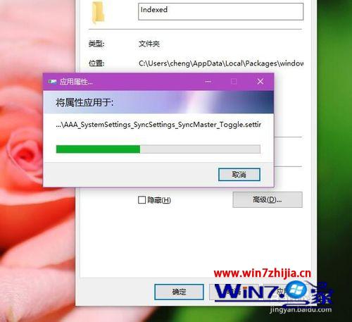 7、接下来,页面会弹出一个进度条,该进度条显示了设置文件属性应用时的进度,如果该文件夹下的子文件夹或者文件很多时会弹出一个进度条,在该教程中文件应用进度比较短;