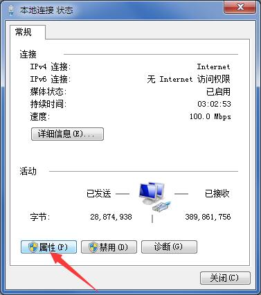 3、在弹出的窗口中,点击“属性”按钮进入;