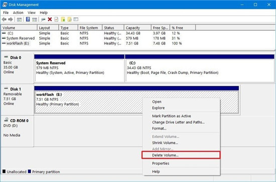3.右键单击可移动驱动器,然后选择“ 删除卷”选项。