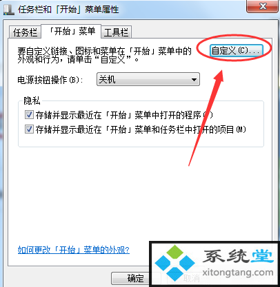 2、那么你们就右击任务栏选择属性,找到【自定义】
