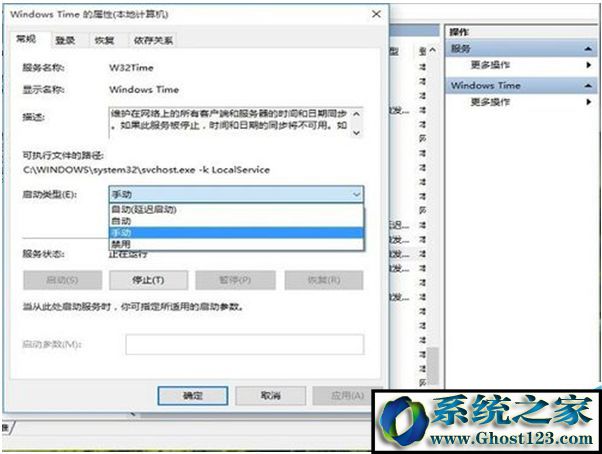 10、当然也在这个界面中启动和停止这个服务,选择下方的确定就可以保存退出,在服务的状态栏里确认该服务已经启动,并且是自动状态,这样win就会自动同步时间,不用忧郁时间不准了。