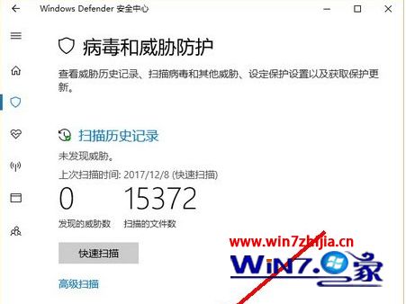 第三步、在windows defender安全中心窗口,点击“病毒和威胁防护”;