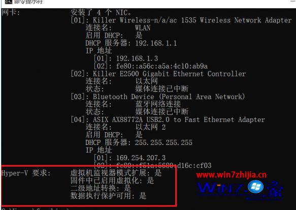 查看下自己的处理器是否支持虚拟化技术,不支持的话,就别费劲找回Hyper-V功能了,重点信息的最后,4个要求是不是全都是“是”。