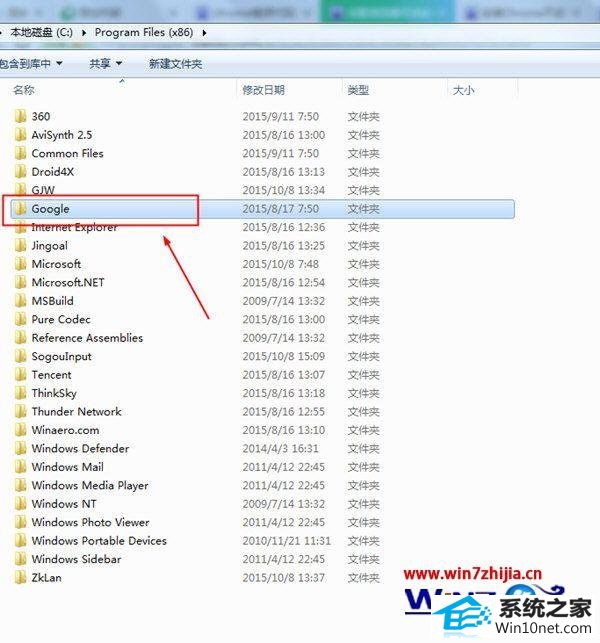 1、请打开谷歌浏览器残余文件所在的位置文件夹,一般都在C盘的program Files文件夹(64位系统的在program Filesx86文件夹里);