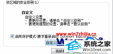3、在安全选项卡中,最下面有一个该区域的安全级别这样一个选项,下面有一个自定义的级别,通常如果这里被更改,就会在上面显示一个自定义;