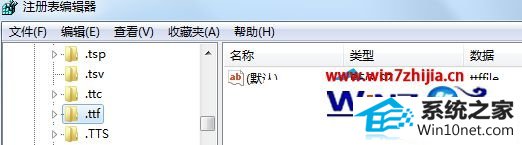 2、在打开的注册表中依次展开并定位到HKEY_CLAssEs_RooT.ttf,确保数据为ttffile;