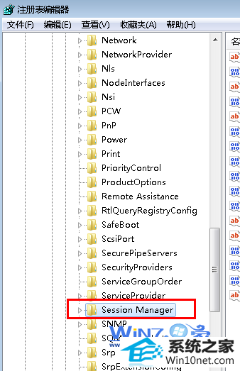 2、在注册表中的左侧依次展开并定位到“HKEY_LoCAL_MACHinE\sYsTEM\CurrentControlset\Control\session Manager”项;