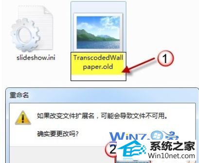 2、在打开的文件中将Transcodedwallpaper.jpg右击重命名为Transcodedwallpaper.old;