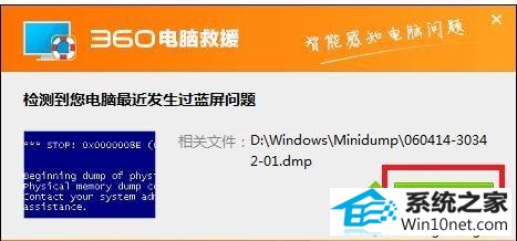 1、从网上下载安装“360安全卫士”,并确保其在后台运行,当电脑因蓝屏而必须启动后,360会自动检测到该蓝屏故障,并在任务栏右下角给出提示,点击“立即修复”;