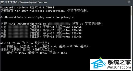 3、在输入框输入:ping www.xitongcheng.com;