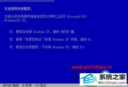 2、如果无法进入系统安装,也可以用光盘引导启动电脑安装,在安装程序的界面中按R键安装“恢复控制台”;