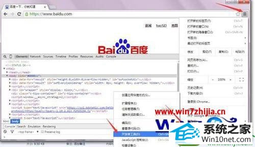 6、通过地址栏右边的按钮也可以调出调试工具:在菜单中点击“更多工具”,在子菜单中点击“开发者工具”就可以了。